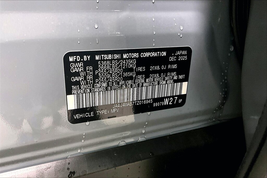 - Front tires: 255/45WR20.0
