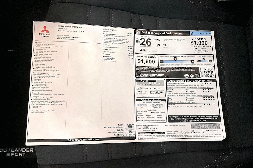 2026 Mitsubishi Outlander Sport 2.0 SE