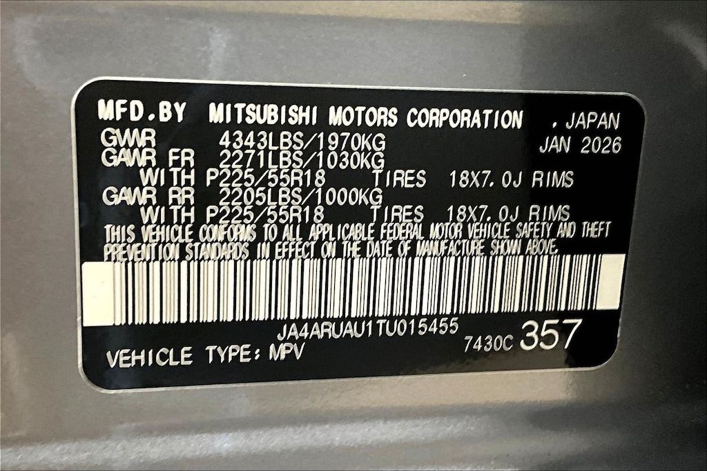 - Front tires: 225/55HR18.0
