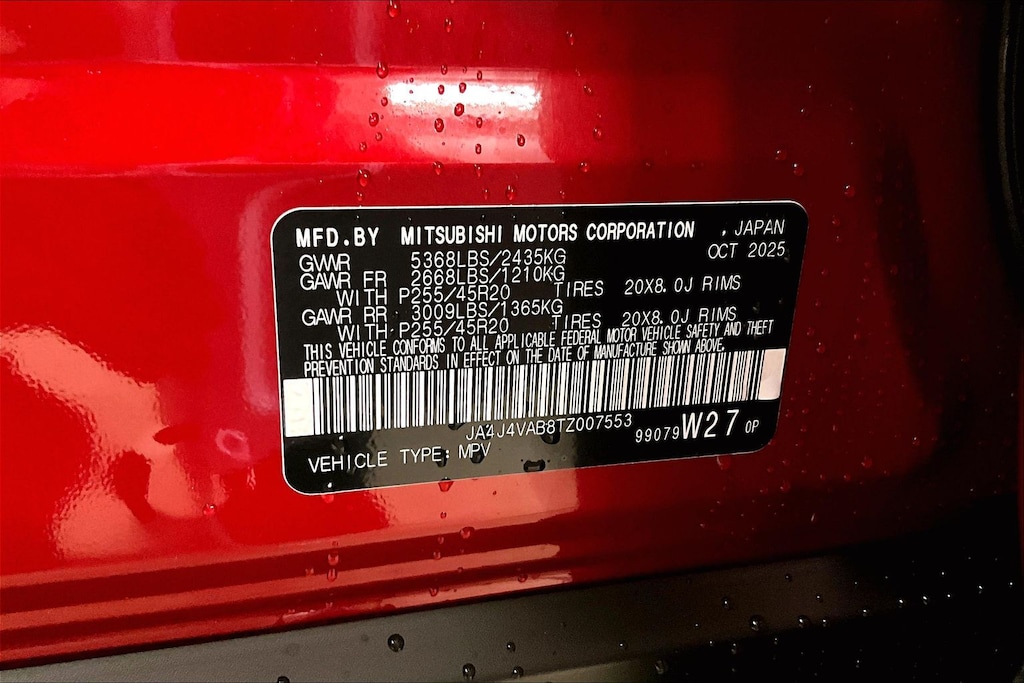 - Front tires: 255/45WR20.0