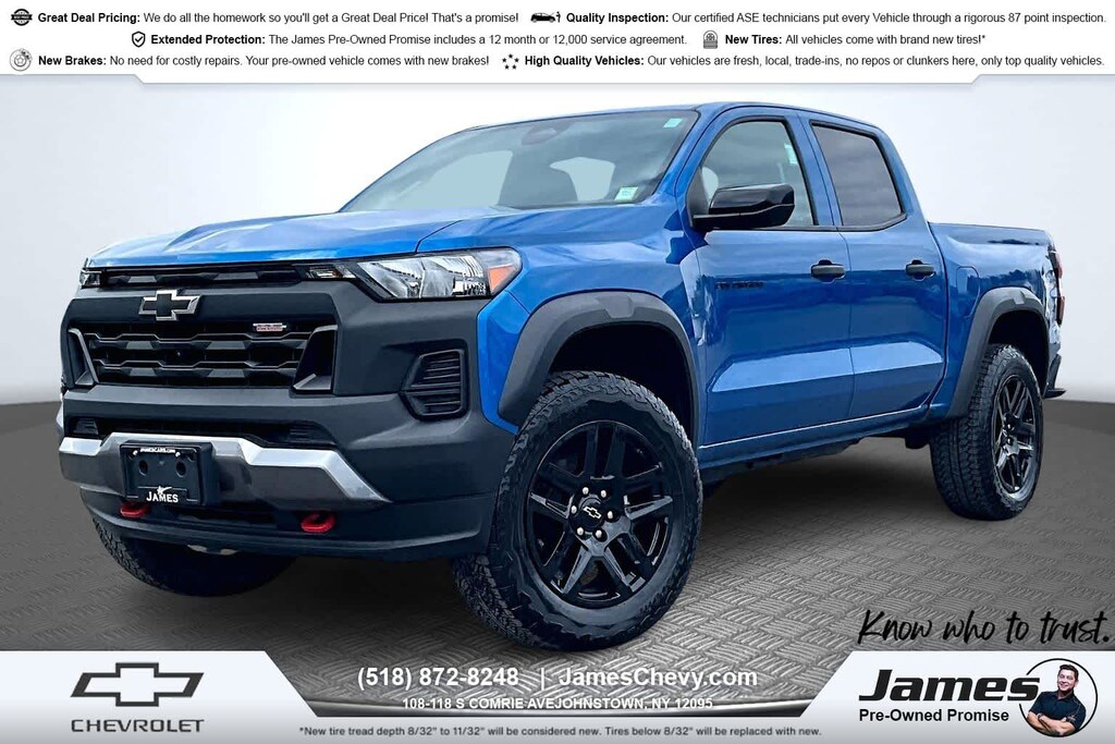 Navigation, 4x4, Satellite Radio, iPod/MP3 Input, Onboard Communications System Chevrolet 4WD Trail Boss with GLACIER BLUE METALLIC exterior and JET BLACK CLOTH SEATS interior features a 4 Cylinder Engine with 310 HP at 5600 RPM*.