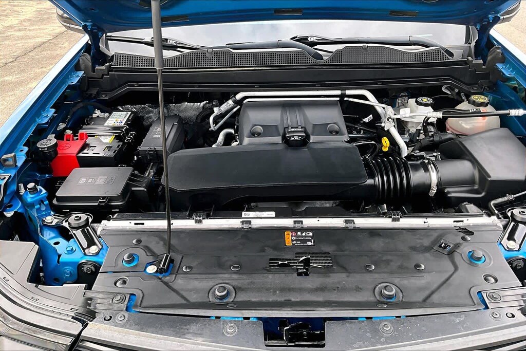 TECHNOLOGY PACKAGE includes (KSG) Adaptive Cruise Control, (UKK) Rear Pedestrian Alert and (UV2) HD Surround Vision (Includes (BDR) Locking Cylinder. WHEELS, 20" X 9" (50.8 CM X 22.9 CM), HIGH GLOSS BLACK ALUMINUM, TRAIL BOSS CONVENIENCE PACKAGE II includes (A2X) 8-way power driver seat, (AL9) Driver power lumbar, (PPA) EZ Lift and Lower Tailgate, (BPC) StowFlex Tailgate and (BDR) Locking Cylinder, SAFETY PACKAGE includes (UKI) Blind Zone Steering Assist, (UFB) Rear Cross Traffic Braking, (UD7) Rear Park Assist (Includes (DLF) Heated outside Rearview Mirror. BEDLINER, SPRAY-ON, BLACK WITH CHEVROLET LOGO, TRAIL BOSS CONVENIENCE PACKAGE includes (A28) Sliding rear window, (C49) Rear defogger and (K34) Cruise Control, MIRRORS, OUTSIDE HEATED POWER-ADJUSTABLE, ENGINE, 2.7L TURBO PLUS (310 hp [231 kW] @ 5600 rpm, 391 lb-ft of torque [530 Nm] @ 2000 rpm) (STD) (When ordered with (RWQ) LPO, 2.7L Turbo High-Output Calibration, the torque changes to 430 lb-ft of torque [583 Nm] @ 3000 rpm. TRANSMISSION, 8-SPEED AUTOMATIC (STD).