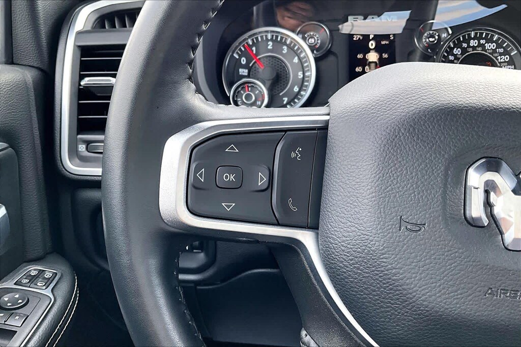 RADIO: UCONNECT 5 NAV W/12.0" DISPLAY Google Android Auto®, Off-Road Information Pages, Selectable Tire Fill Alert, Trailer Tow Pages, Disassociated Touchscreen Display, HD Radio, For Details, Visit DriveUconnect.com, For More Info, Call 800-643-2112, 12" Touchscreen Display, Air Conditioning ATC w/Dual Zone Control, GPS Navigation, 4G LTE Wi-Fi Hot Spot, SiriusXM w/360L, All Radio Equipped Vehicles, Connected Travel & Traffic Services, All R1 High Radios, Alexa Built-In, Apple CarPlay®, CHROME FLAT CAB-LENGTH SIDE STEPS, 9 ALPINE SPEAKERS W/SUBWOOFER, ANTI-SPIN DIFFERENTIAL REAR AXLE, PROTECTION GROUP Transfer Case Skid Plate Shield, Tow Hooks, LEVEL 1 EQUIPMENT GROUP Google Android Auto®, For Details, Visit DriveUconnect.com, For More Info, Call 800-643-2112, Leather Wrapped Steering Wheel, Rear Dome w/On/Off Switch Lamp, Front Fog Lamps, Glove Box Lamp, Auto Power-Folding Mirrors, Footwell Courtesy Lamp, 4G LTE Wi-Fi Hot Spot, Mirror Running Lights, Radio: Uconnect 5 W w/8.4" Display, 8.4" Touchscreen Display, Foam Bottle Insert (Door Trim Panel), Wheels: 18" x 8.0" Polished Aluminum, Apple CarPlay®, Big Horn IP Badge, Power Adjustable Convex Aux Mirrors, Forward & Reverse Utility Lights, Locking Lower Glove Box, Selectable Tire Fill Alert, SiriusXM Satellite Radio, Power Heated Fold Telescope Mirrors, Exterior Mirrors w/Supplemental Signals, Steering Wheel Mounted Audio Controls, Exterior Mirrors Courtesy Lamps, Dual Glove, TRANSMISSION: 8-SPEED AUTO (8HP75-LCV) (STD), ENGINE: 6.4L V8 HEAVY DUTY HEMI MDS (STD).