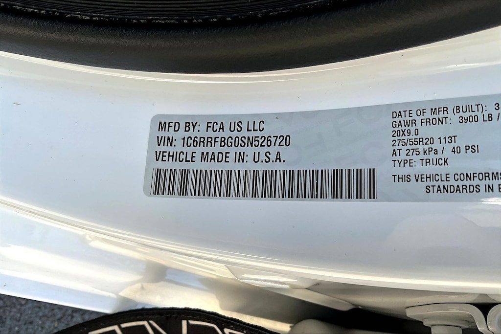 - Front tires: 275/55TR20.0